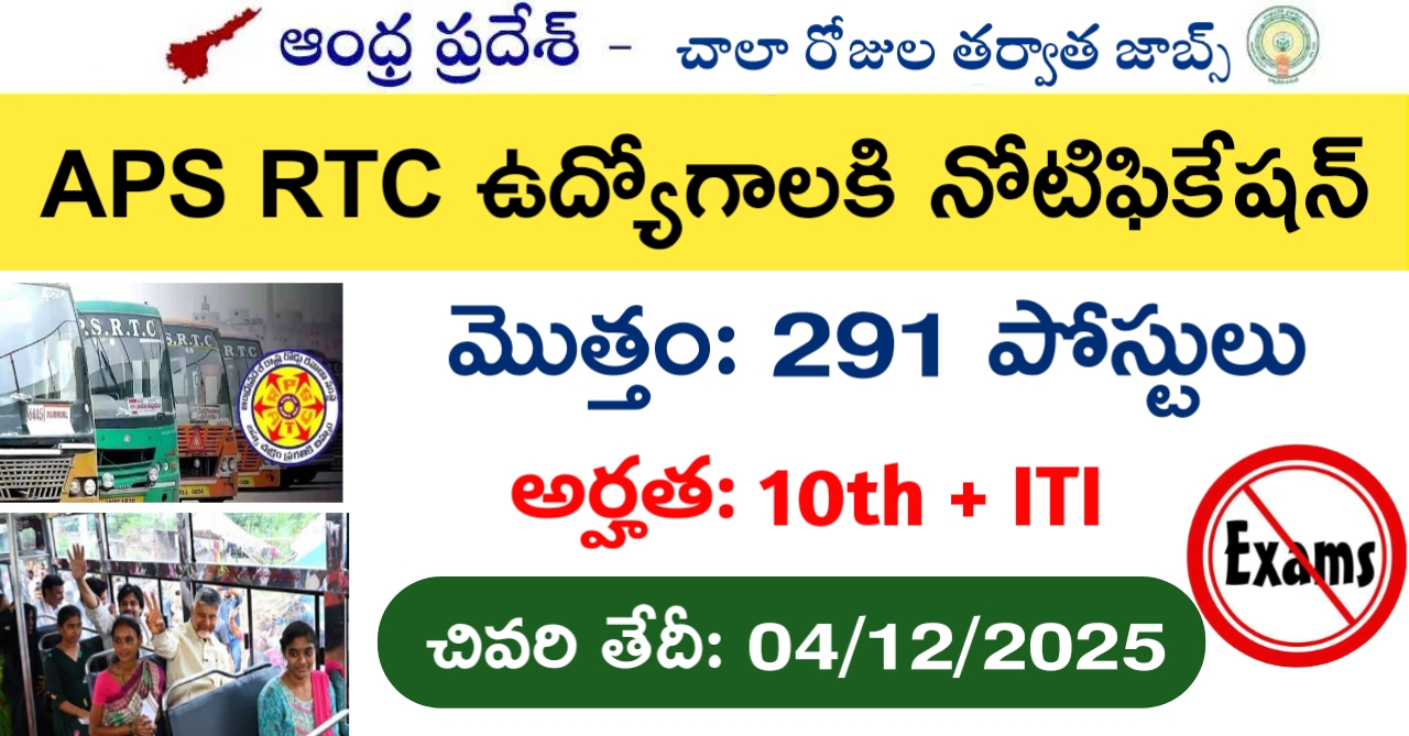 The Andhra Pradesh State Road Transport Corporation (APSRTC) has officially released the notification to fill the vacancies of 291 ITI Apprentice Posts. Interested and eligibile candidates can use this opportunity to apply for these posts before the last date of application. Candidates who have completed their ITI can apply for the APSRTC Notification 2025. The interested applicants can apply in online mode. Here we have mentioned the education details, age limit, selection process, application fee, salary, and how to apply for these posts before the deadline. The application dates have already begun.