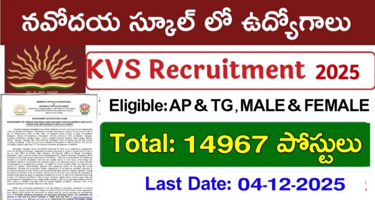 KVS Recruitment 2025 Teaching and Non Teaching Jobs14967 vecancys The Kendriya Vidyalaya Sangathan Navodaya Vidyalaya Samiti (KVS and NVS) Recruitment …